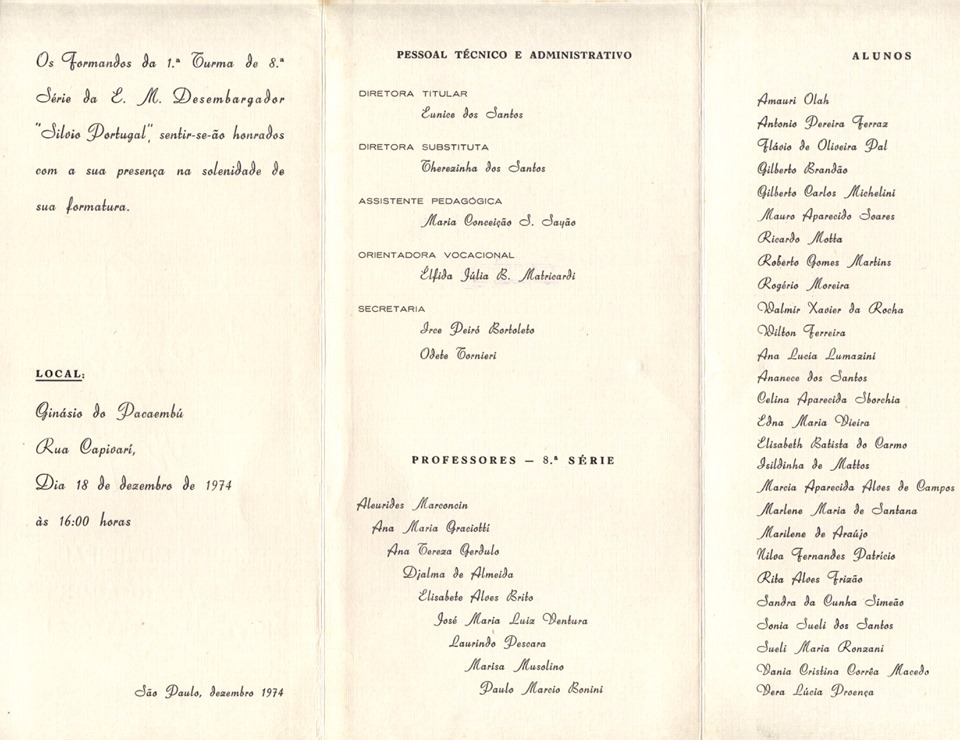 E podem acreditar que essa letra fez muito sucesso e era cantada em todas as comemorações dentro e fora da escola." (Dario, ex-aluno e morador de Pirituba)